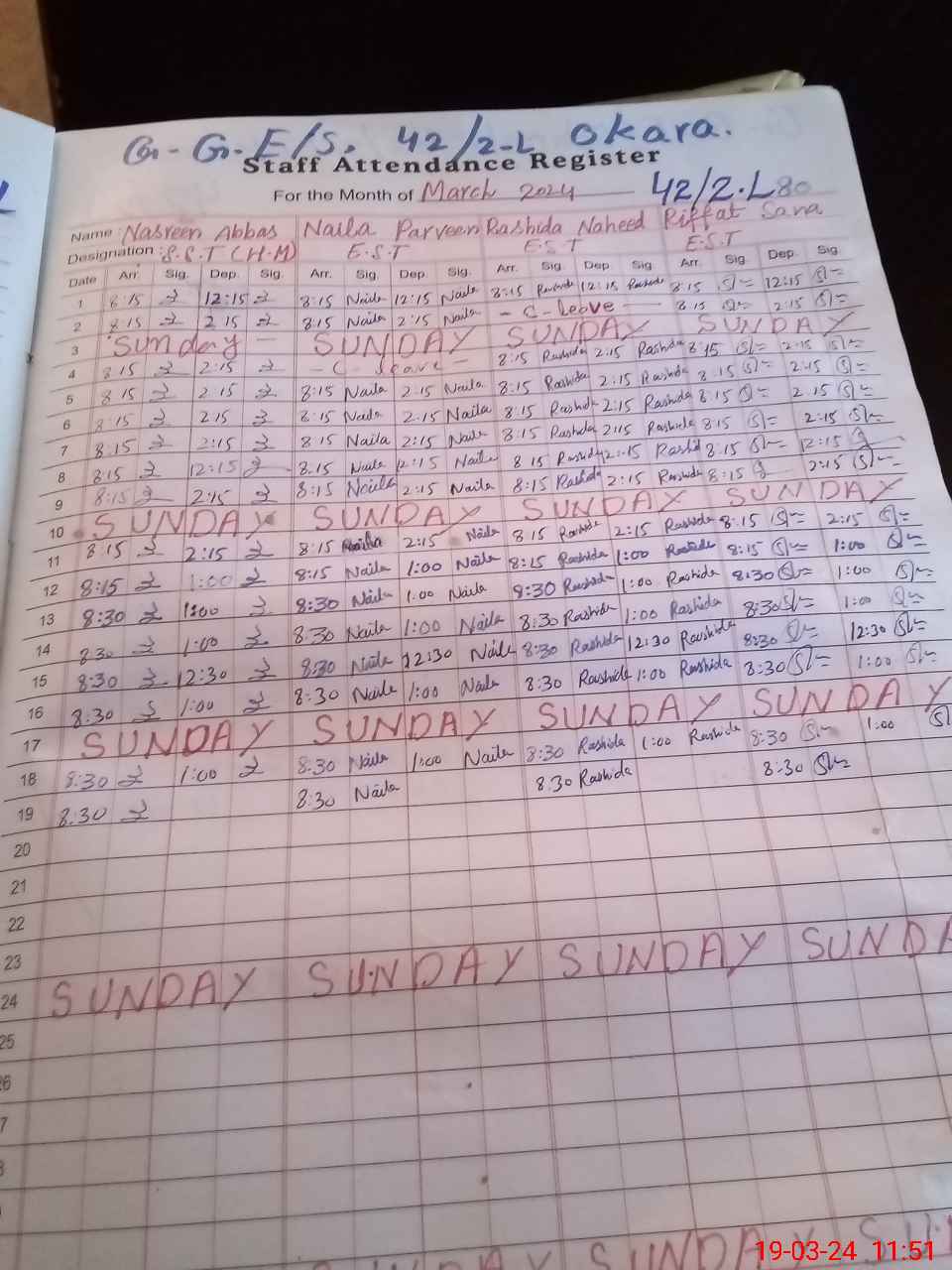 | District: OKARA | Tehsil: OKARA | Markaz: 4/4.L-FEMALE | Level: Middle | |