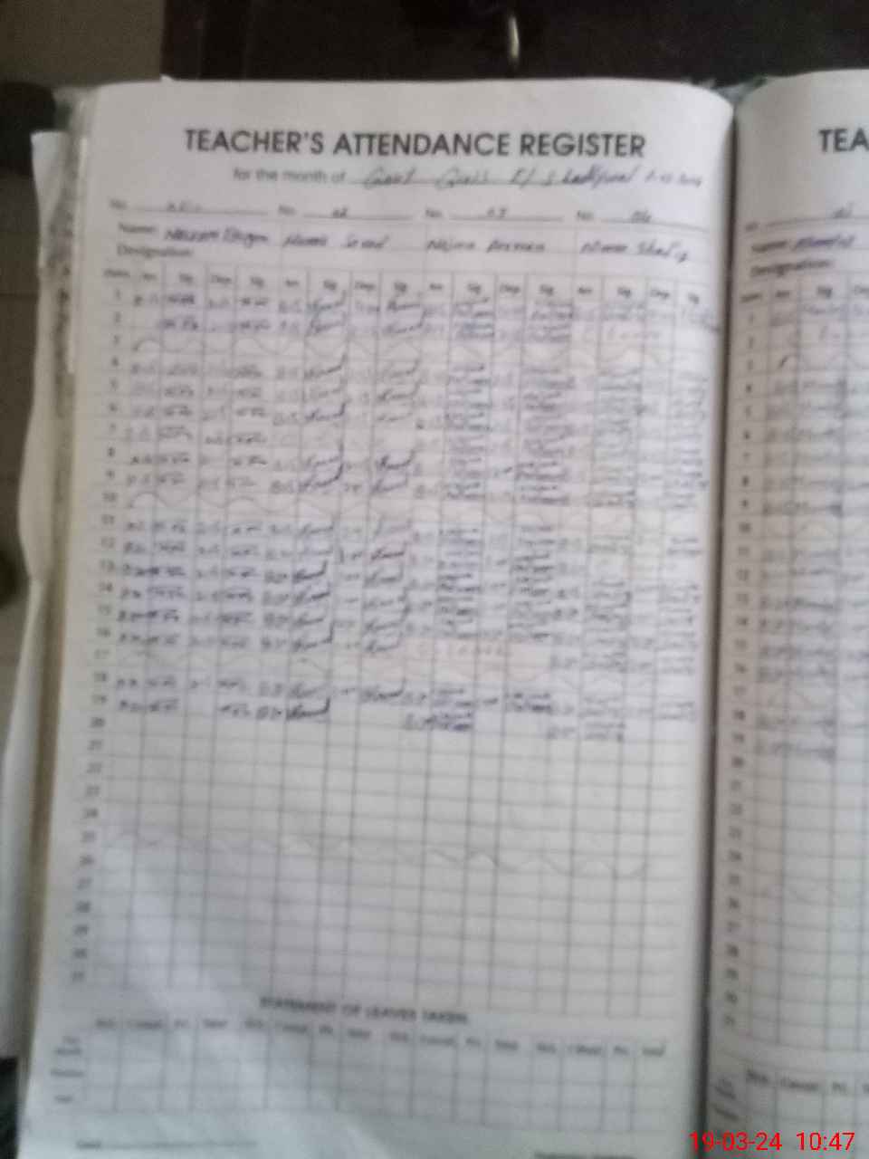 | Leave | Duty | Absent | Maternity | Medical | Ex- Pak |