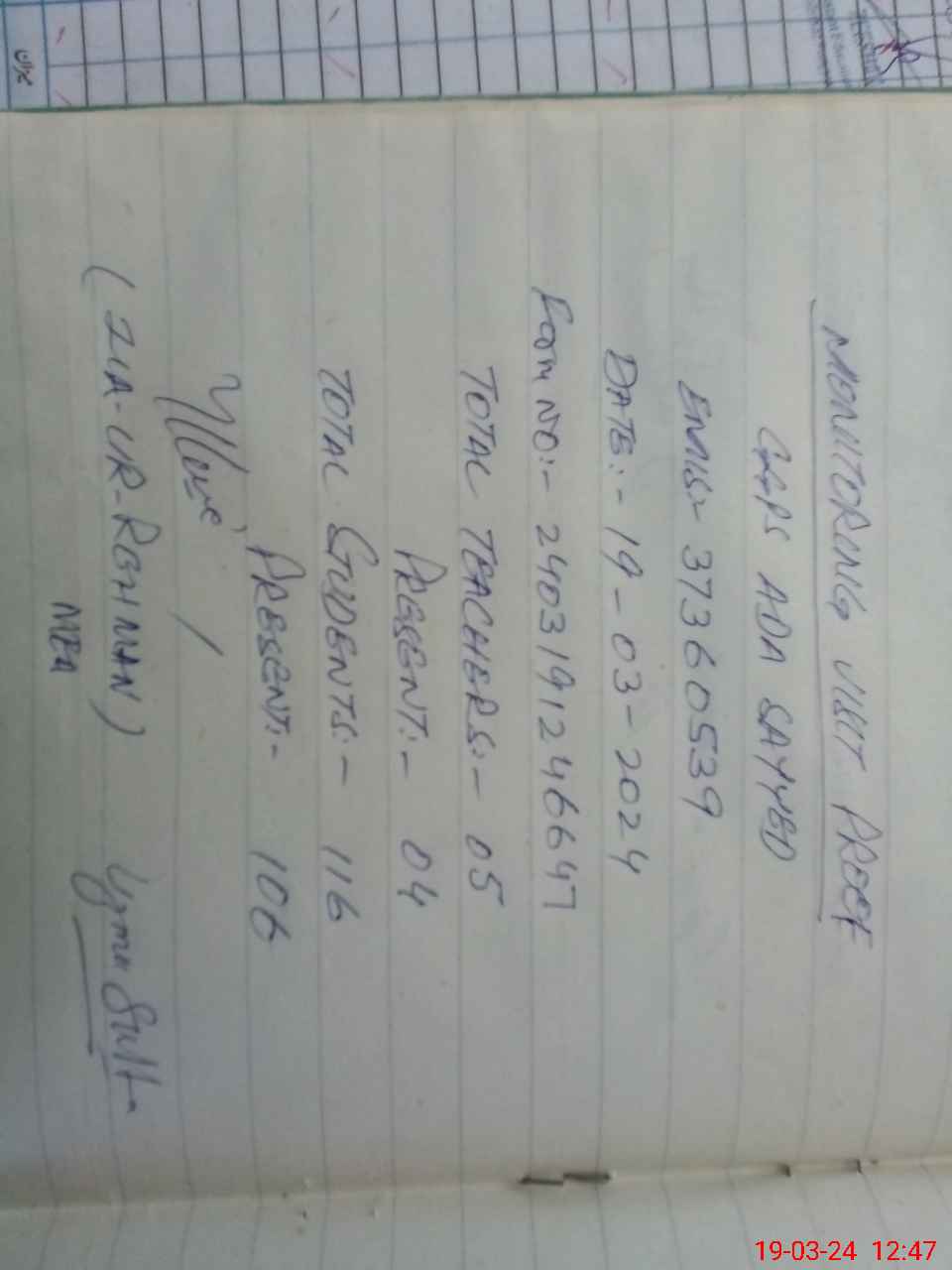 | EMIS Code: 37360539 | Name of School: GGPS ADA SAYYED | |||