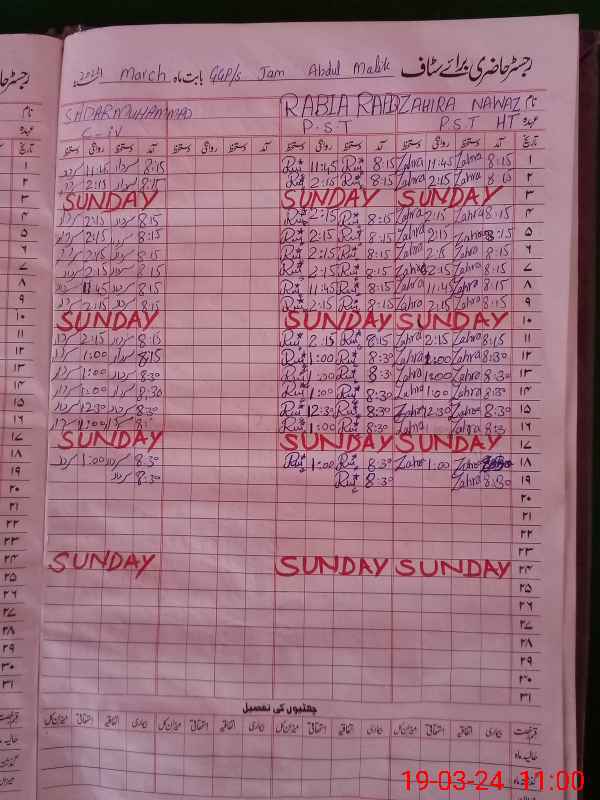 | CNIC | Full Name | Designation | R/C | Absence During Last Calender Month |