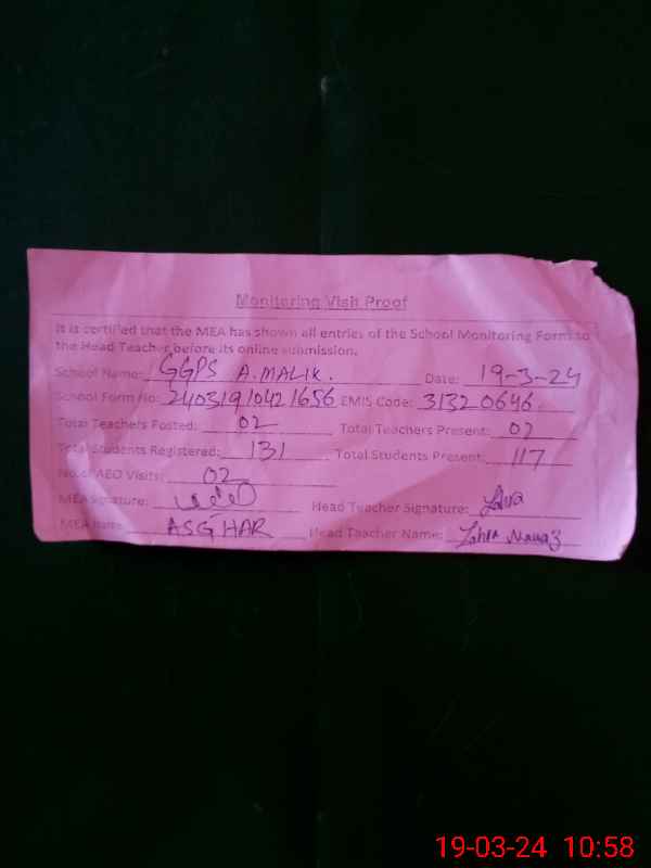 | EMIS Code: 31320646 | Name of School: GGPS JAM ABDUL MALIK | |||