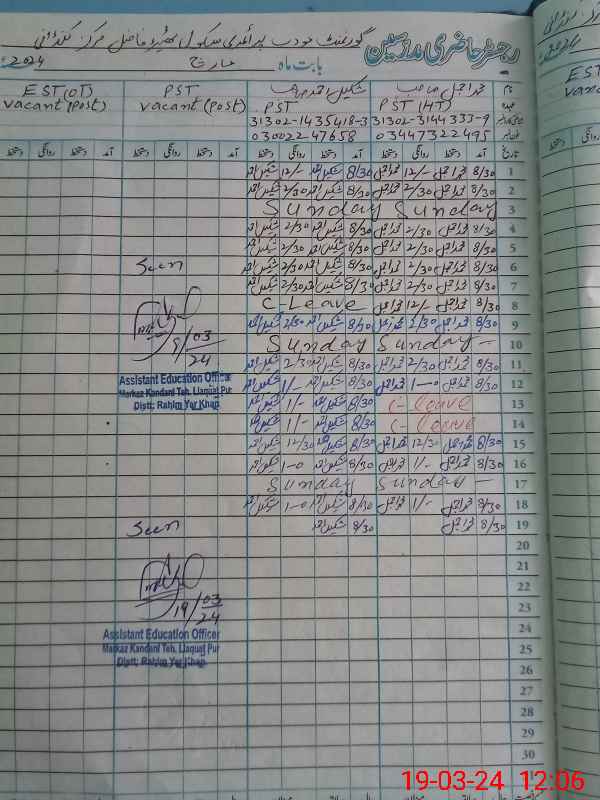 | Name: NO**** AH**** Designation: (School Headmaster's/Headmistress's) EST (OT) Phone/Cell Number: 03**** |