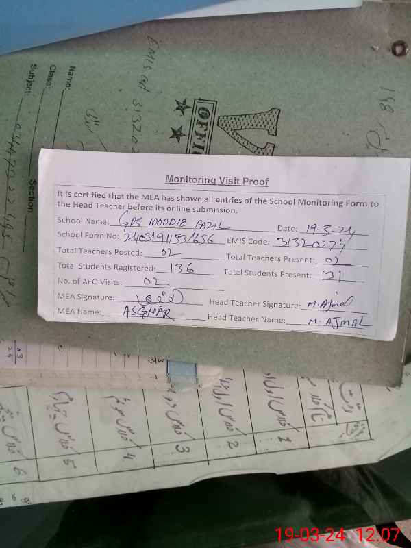 | EMIS Code: 31320274 | Name of School: GPS MOADIB THAIR FAZIL | |||