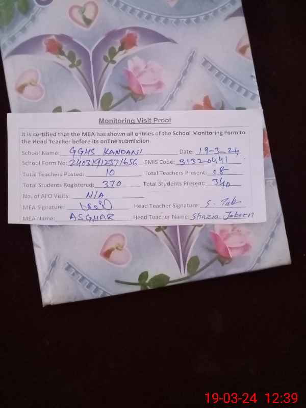| EMIS Code: 31320441 | Name of School: GGHS KANDANI NO. 1 | |||