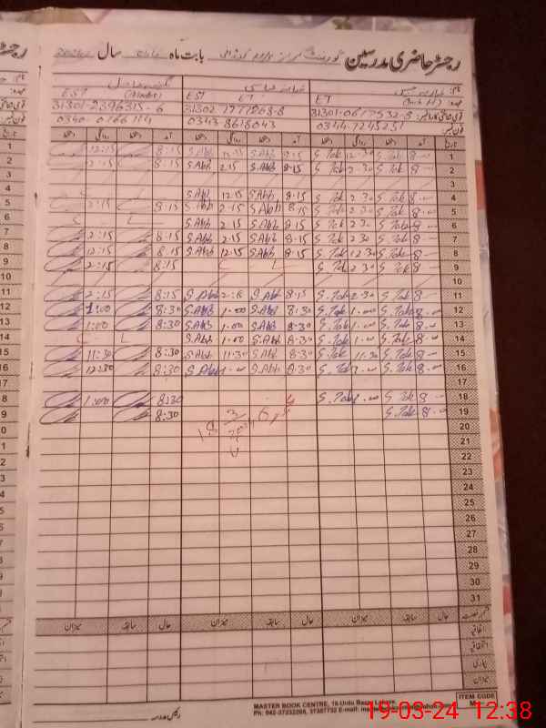 | Name: SH**** JA**** Designation: (School Headmaster's/Headmistress's) EST (G) Phone/Cell Number: 03**** |
