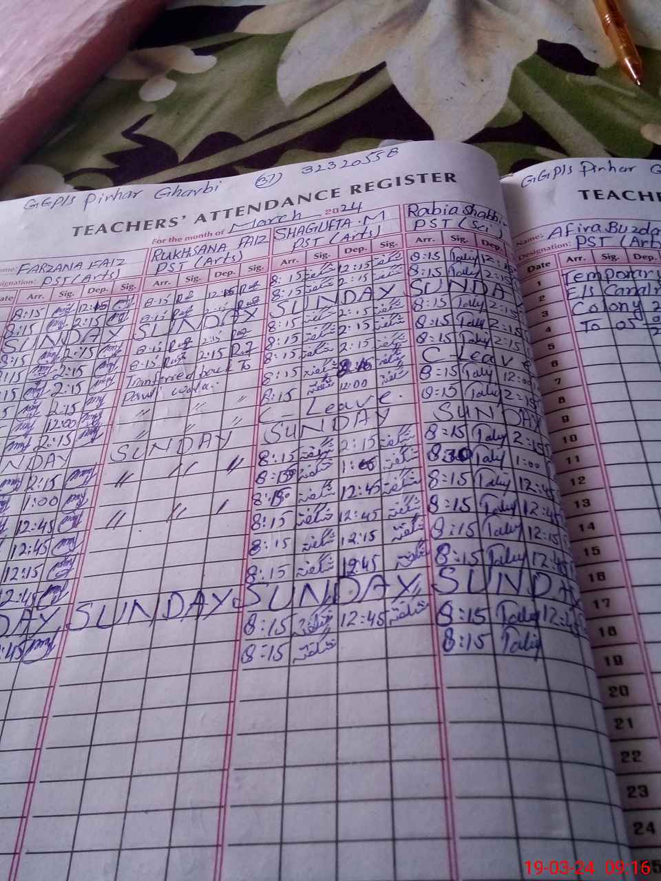 | Name: FA**** FA**** Designation: (School Headmaster's/Headmistress's) PST Phone/Cell Number: 03**** |