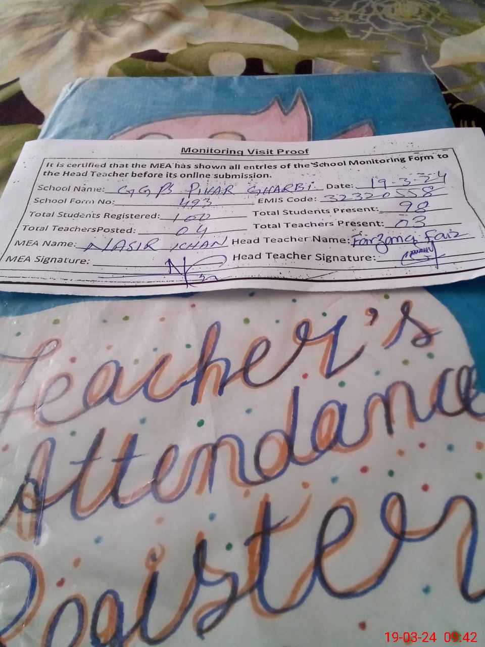 | Attendance Register | Head Teacher | MEA with School | Visit Proof |