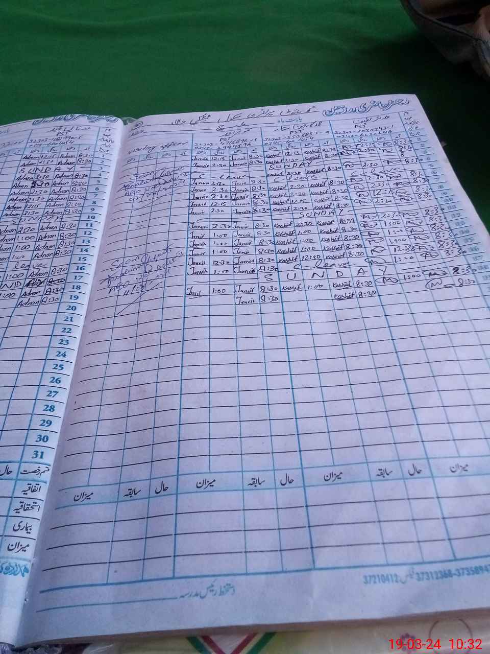 | CNIC | Full Name | Designation | R/C | Absence During Last Calender Month |