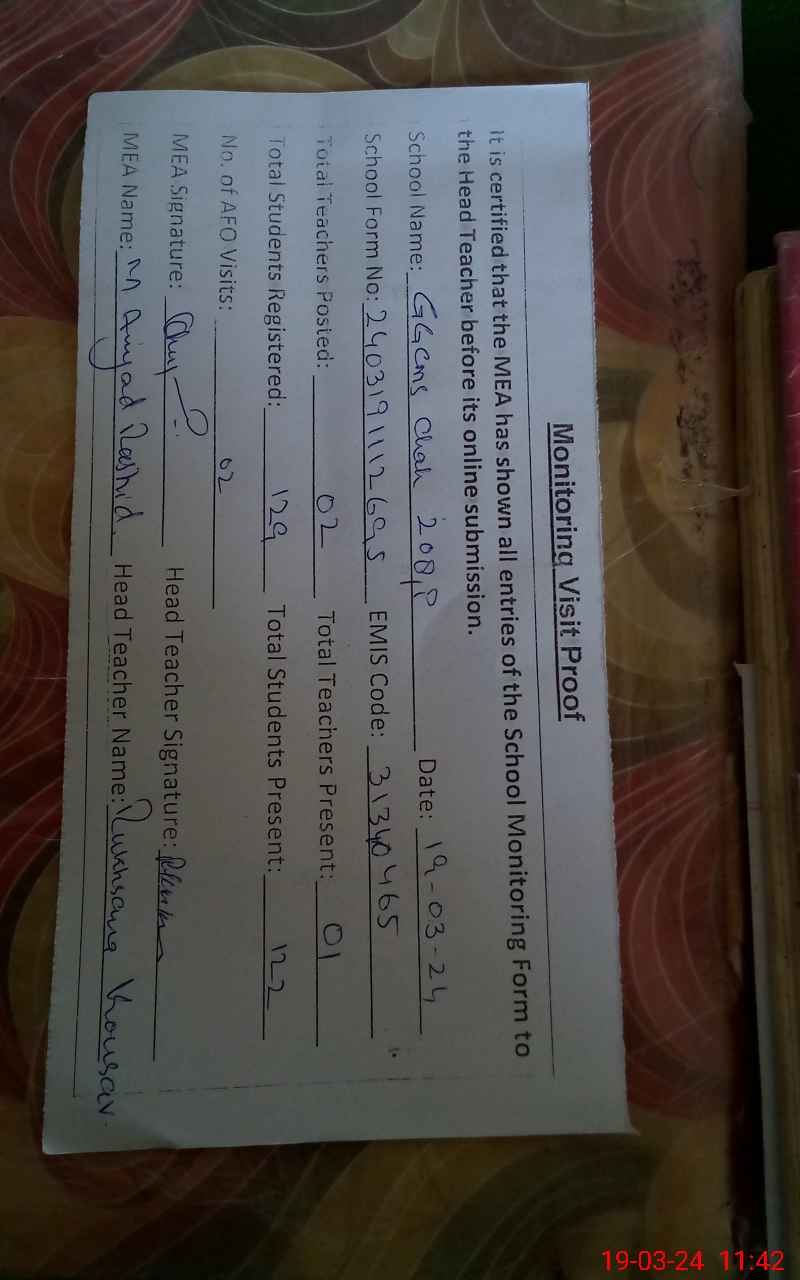 | EMIS Code: 31340465 | Name of School: GGCMS 208/P | |||