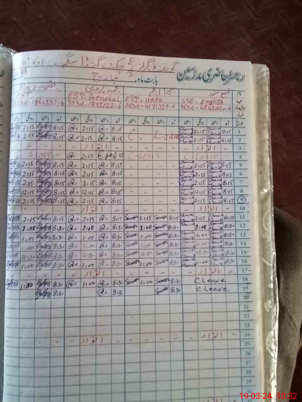 | CNIC | Full Name | Designation | R/C | Absence During Last Calender Month |