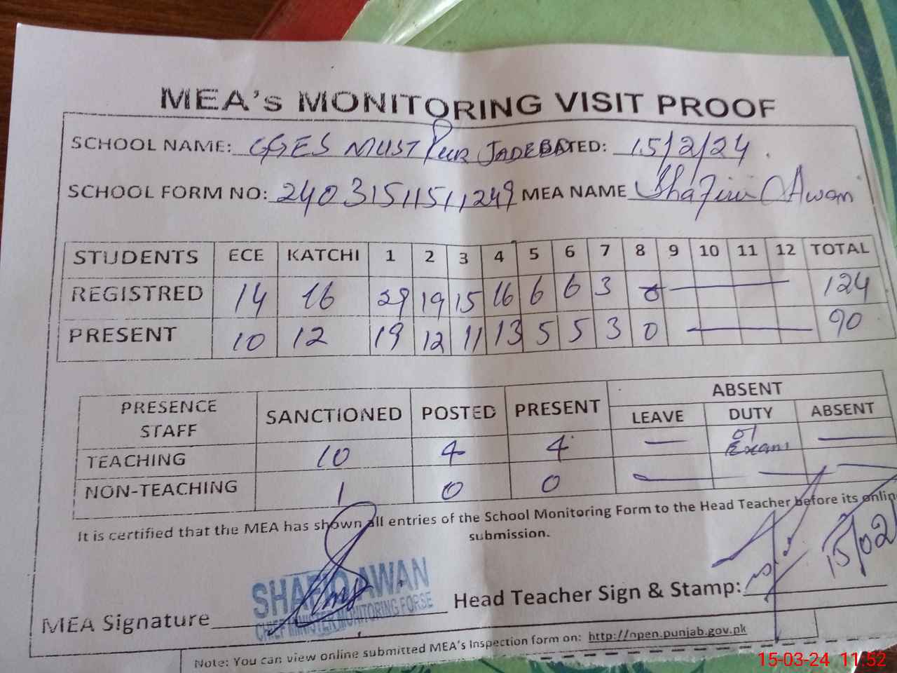 | EMIS Code: 36410176 | Name of School: GES MAST PUR JADEED, P/O BILAWAL PUR, KABIRWALA | |||
