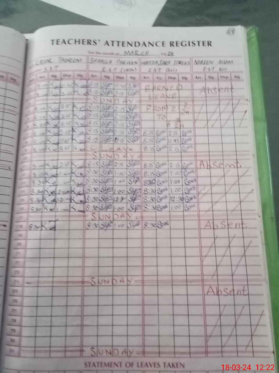 | 31**** | No**** As**** | 3 | 1 | 0 | 0 | 0 | 0 | 0 | 0 | 0 | 0 | 0 | Absent (Un-Authorized) |