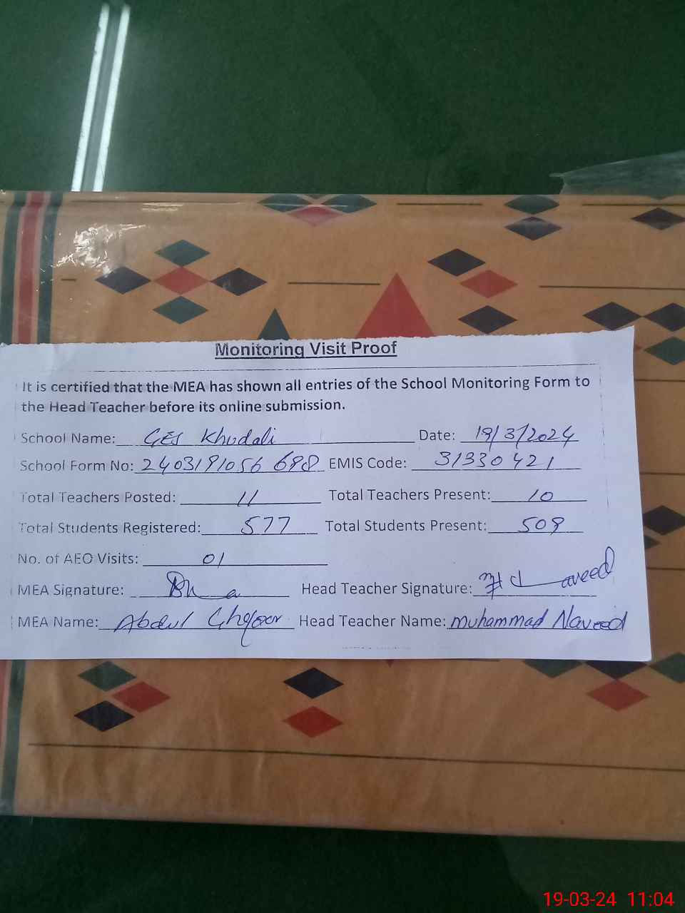 | EMIS Code: 31330421 | Name of School: GES KHUDALI | |||
