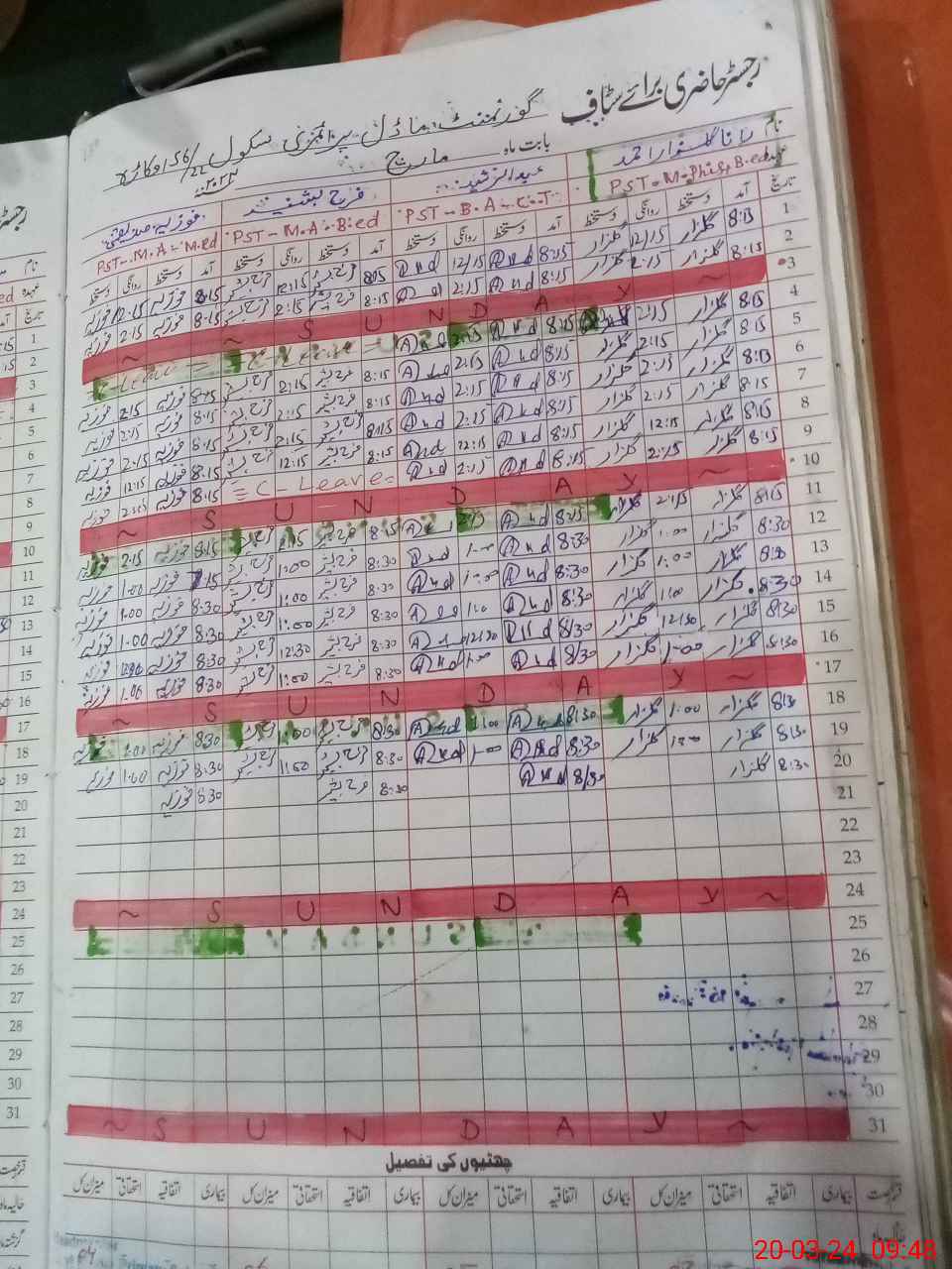 | 35**** | Su**** Ha**** | PST | Regular | 0 | 0 | 0 | 0 | 0 | 0 | 0 | 0 | 0 | Exam Duty |