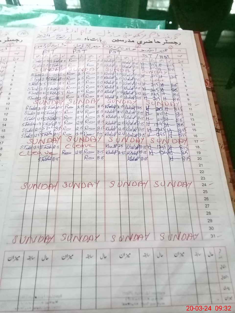 | CNIC | Full Name | Designation | R/C | Absence During Last Calender Month |