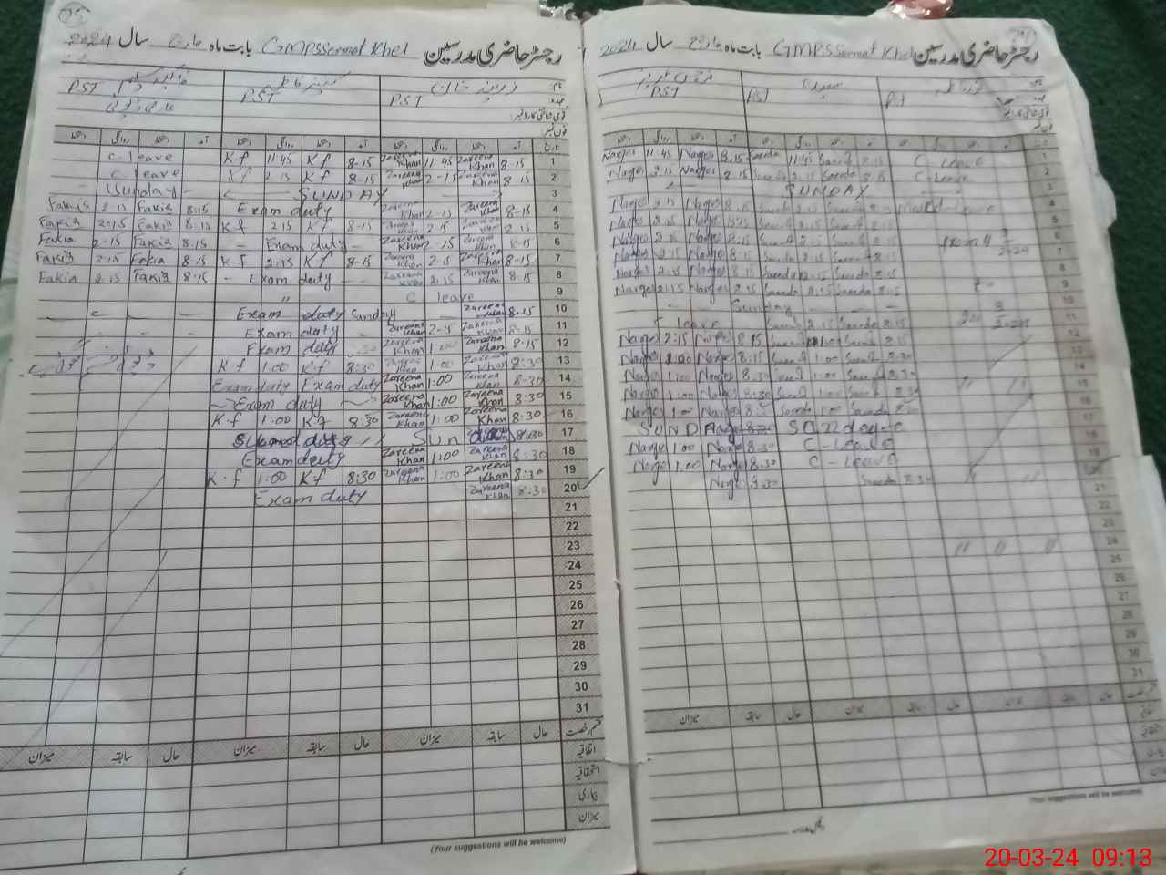 | 38**** | Ka**** Fa**** | PST | Regular | 2 | 0 | 0 | 0 | 0 | 0 | 0 | 0 | 2 | Exam Duty |