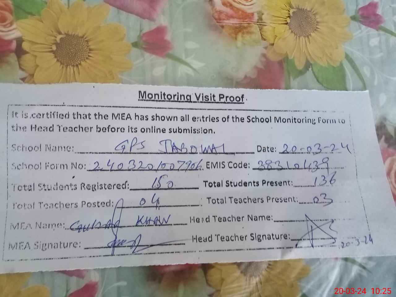 | EMIS Code: 38310439 | Name of School: GPS JABOWAL | |||