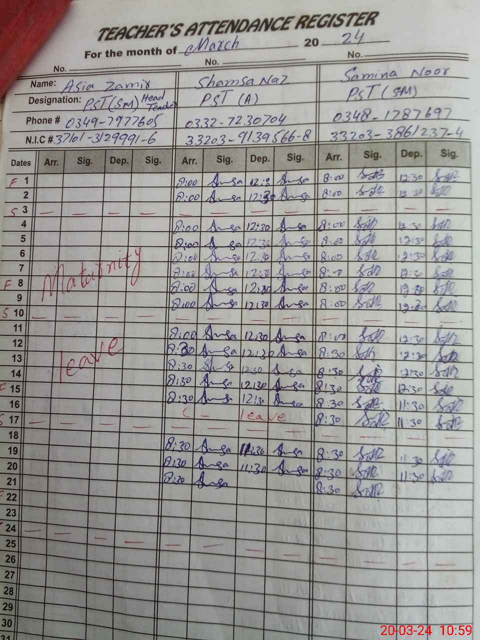 | 37**** | As**** Za**** | PST | Regular | 17 | 0 | 0 | 17 | 0 | 0 | 0 | 0 | 0 | Maternity |