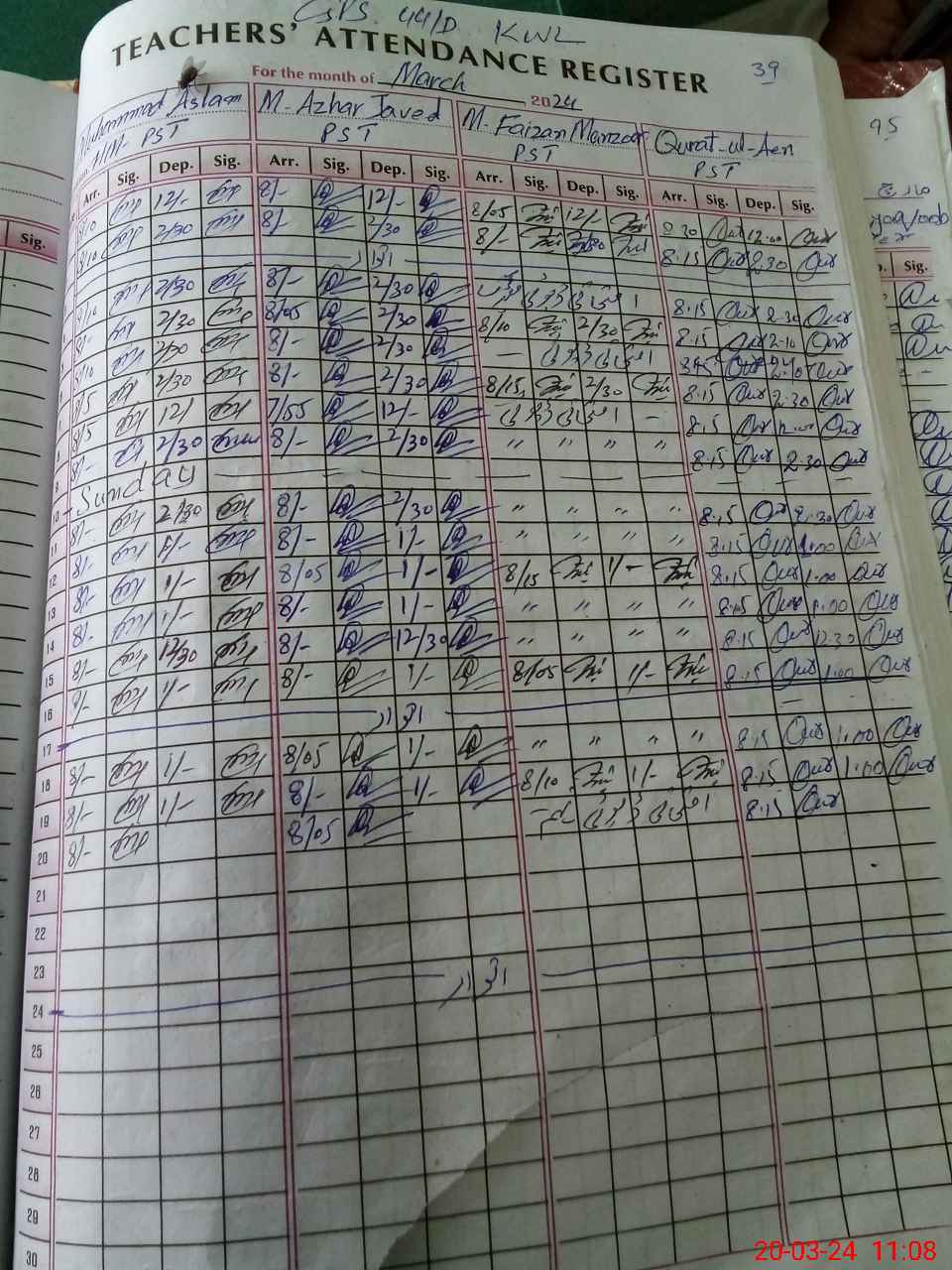 | 36**** | Mu**** Fa**** Ma**** | PST | Regular | 0 | 0 | 0 | 0 | 0 | 0 | 0 | 0 | 0 | Exam Duty |