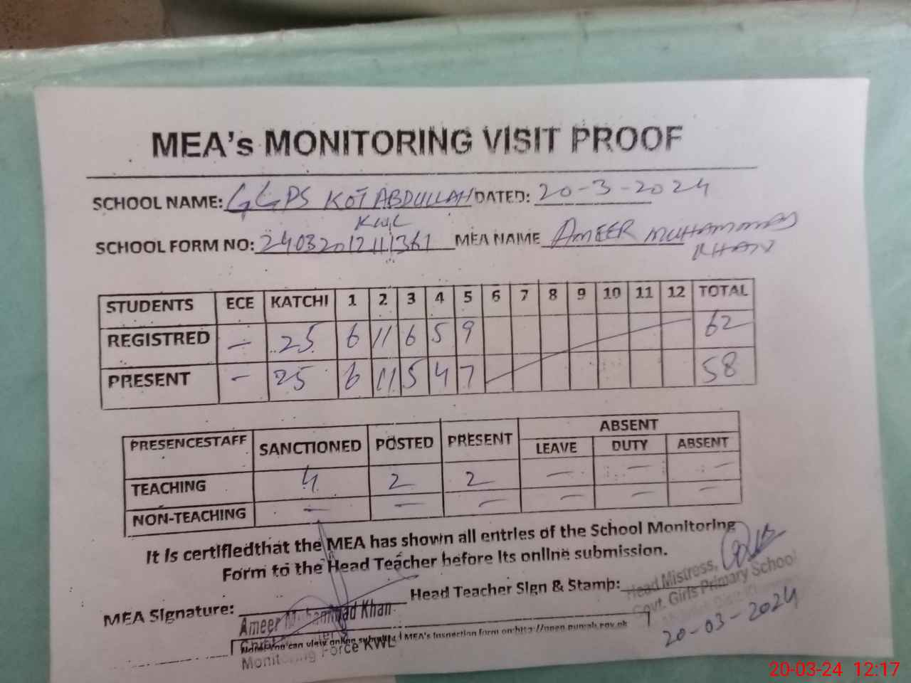 | EMIS Code: 36420373 | Name of School: GGPS KOT ABDULLAH, KHANEWAL | |||