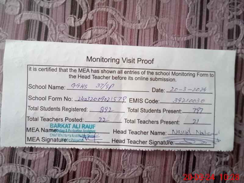 | EMIS Code: 39210030 | Name of School: GGHS 37 SP PAKPATTAN | |||