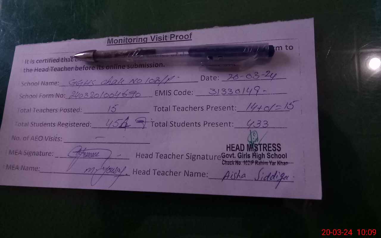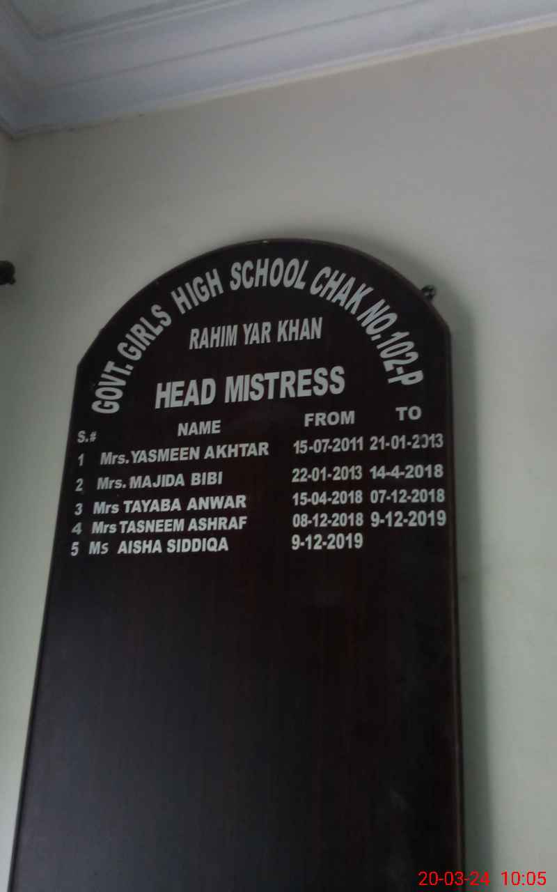 | EMIS Code: 31330149 | Name of School: GGHS CHAK NO. 102/P | |||