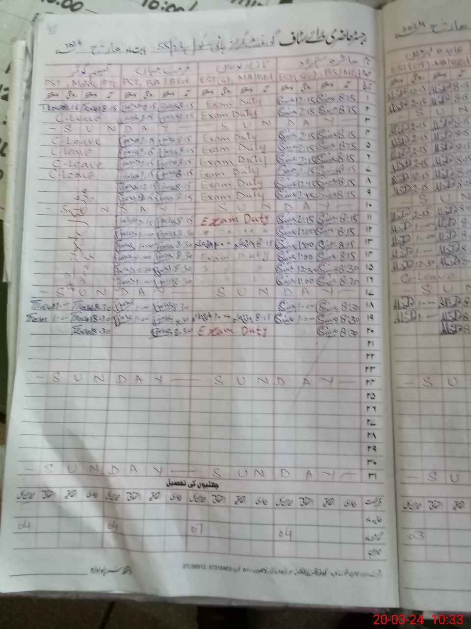 | 35**** | Na**** No**** | 3 | 1 | 0 | 0 | 0 | 0 | 0 | 0 | 0 | 0 | 0 | Exam Duty |