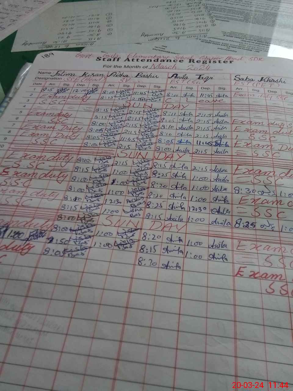 | 31**** | Sa**** Kh**** | 3 | 1 | 0 | 0 | 0 | 0 | 0 | 0 | 0 | 0 | 0 | Exam Duty |