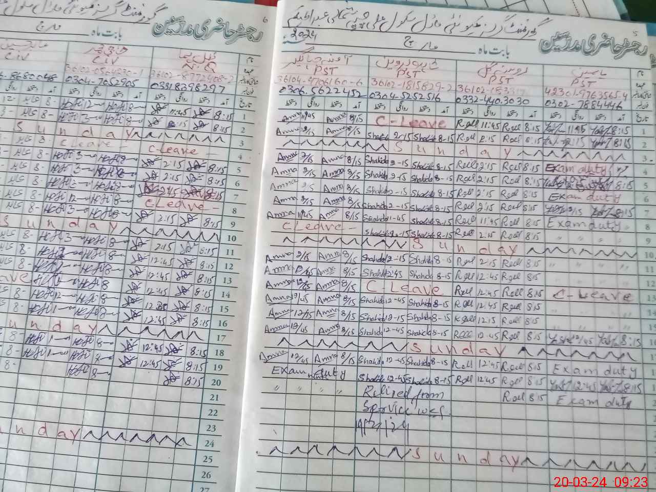 | CNIC | Full Name | Designation | R/C | Absence During Last Calender Month |