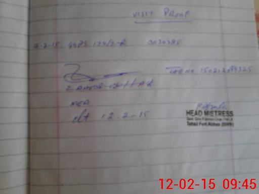 | School Visited by School Health & Nutrition Supervisor (No. of Visits) | Name1: | SHABBIR HUSSAIN | Name2: | NIL | |