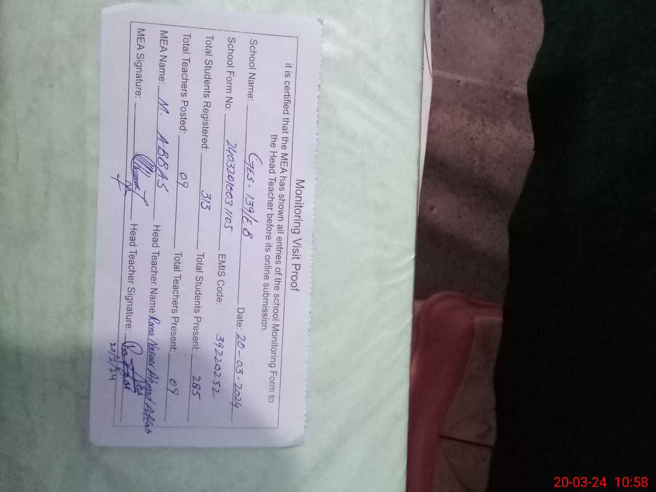 | EMIS Code: 39220252 | Name of School: GES CHAK NO 139 EB | |||