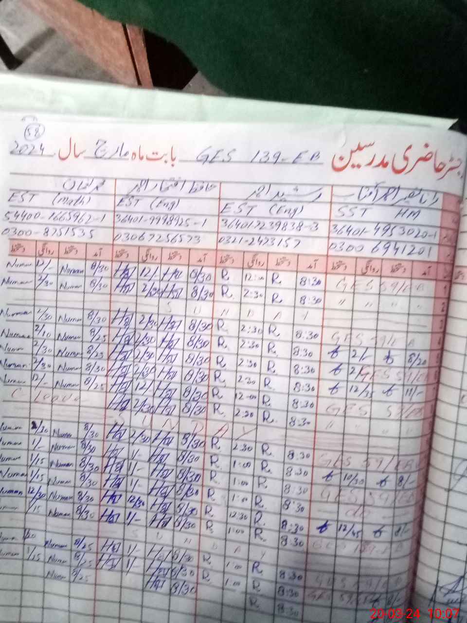 | Name: RA**** NA**** AH**** AF**** Designation: (School Headmaster's/Headmistress's) SST (SCIENCE) Phone/Cell Number: 03**** |