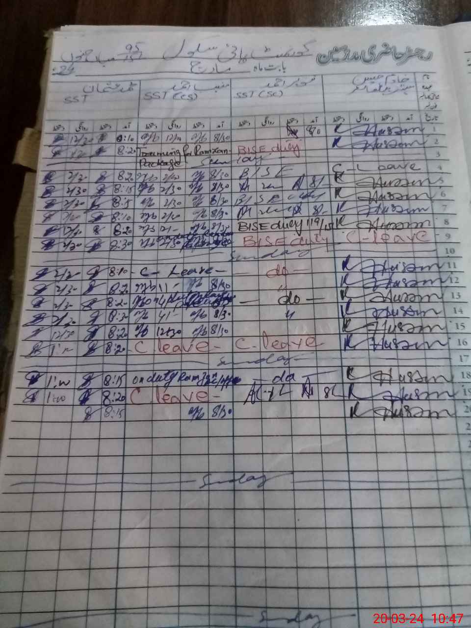 | 36**** | Al**** Na**** | 2 | 1 | 0 | 0 | 0 | 0 | 0 | 0 | 0 | 1 | Exam Duty | |
