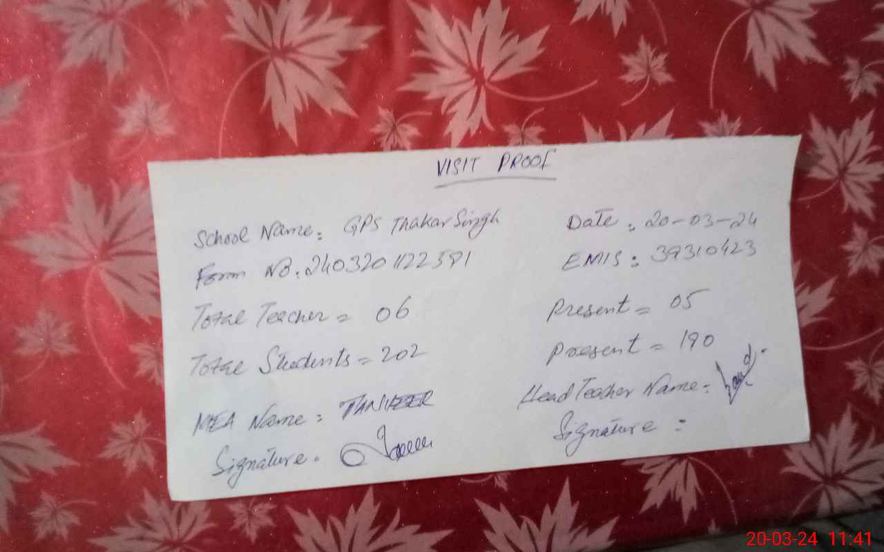 | EMIS Code: 39310423 | Name of School: GPS THAKAR SINGH | |||