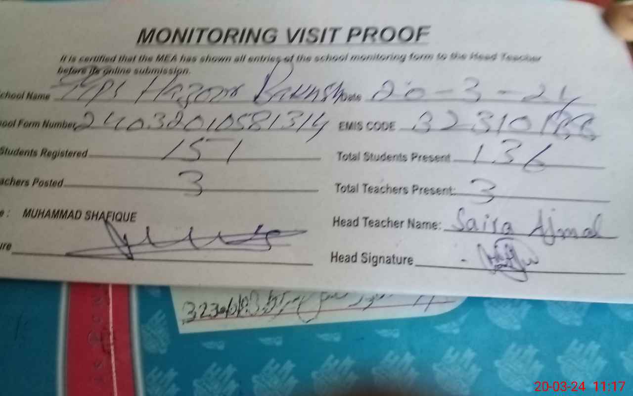 | EMIS Code: 32310188 | Name of School: GGPS HAZOOR BAKHSH | |||