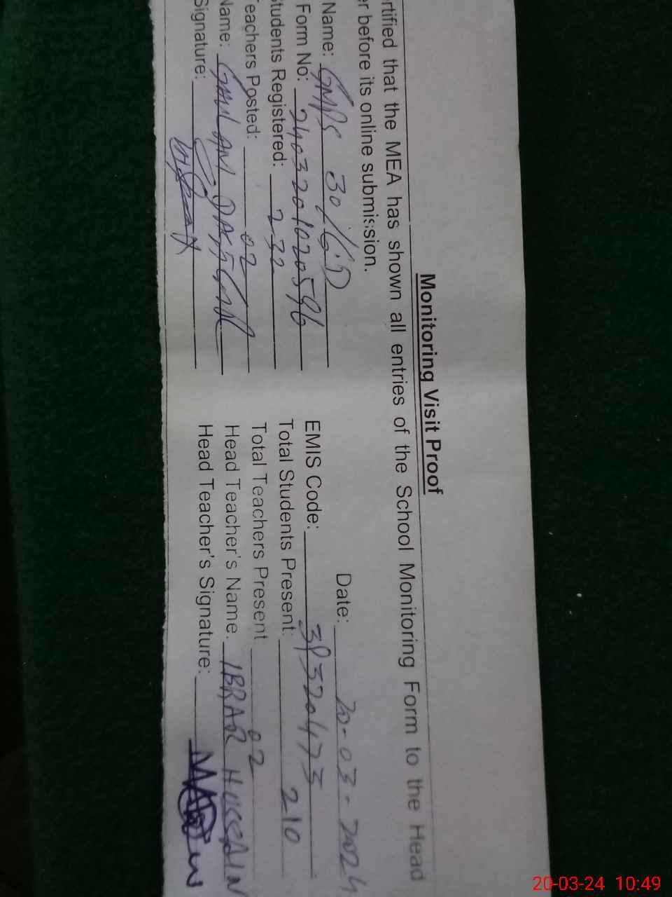 | Certified that this School was Inspected by the Undersigned MEA/DMO Today and the Information Stated Above is as Per Record. | |||||