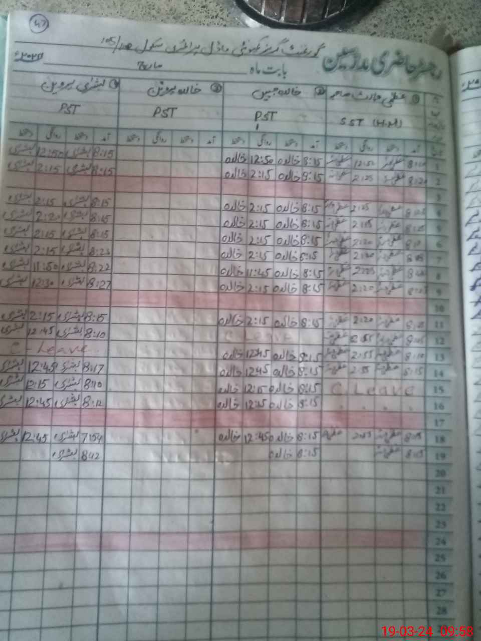| Name: UZ**** WA**** Designation: (School Headmaster's/Headmistress's) S.S.T.(G) Phone/Cell Number: 03**** |