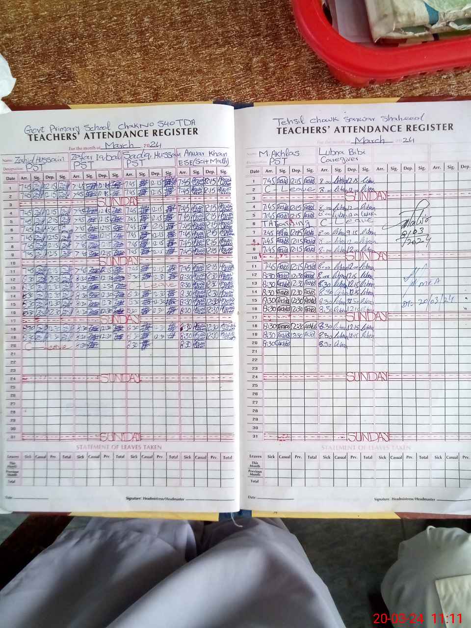 | Name: SA**** HU**** Designation: (School Headmaster's/Headmistress's) PST Phone/Cell Number: 03**** |