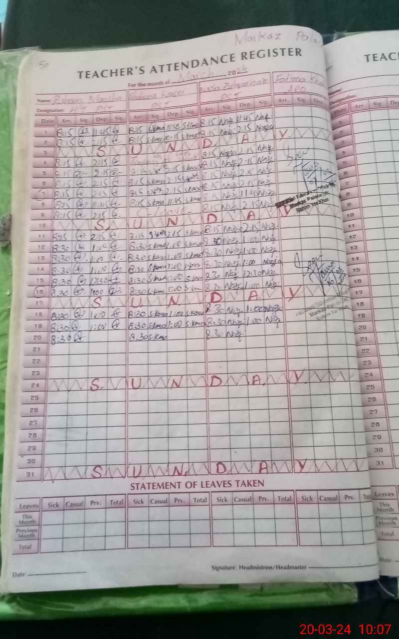 | Name: Zu**** Ma**** Designation: (School Headmaster's/Headmistress's) P S T Phone/Cell Number: 03**** |
