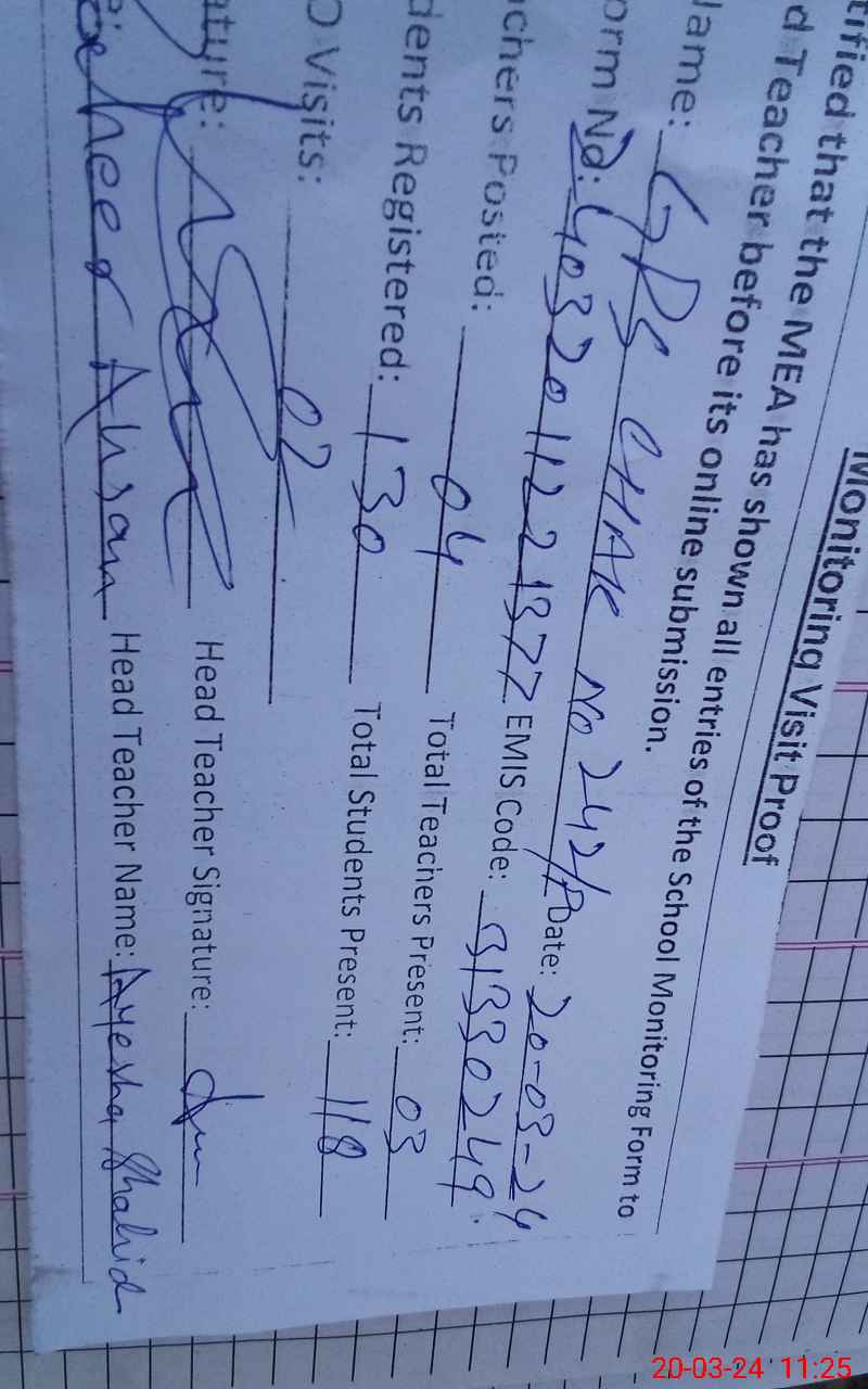 | EMIS Code: 31330249 | Name of School: GPS CHAK 242/P | |||