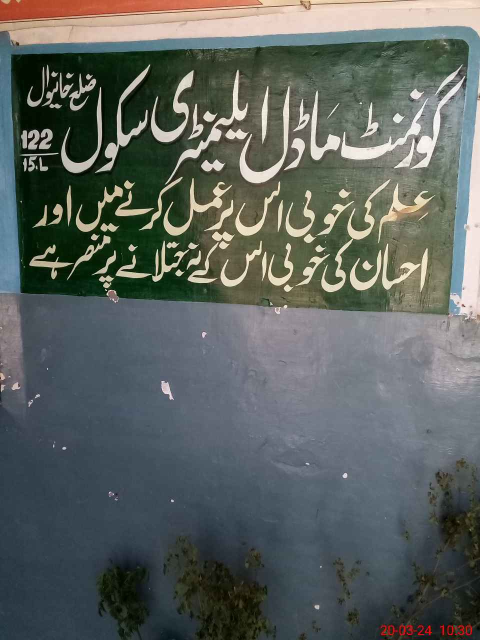 | EMIS Code: 36430102 | Name of School: GMES 122/15-L, MIAN CHANNU | |||