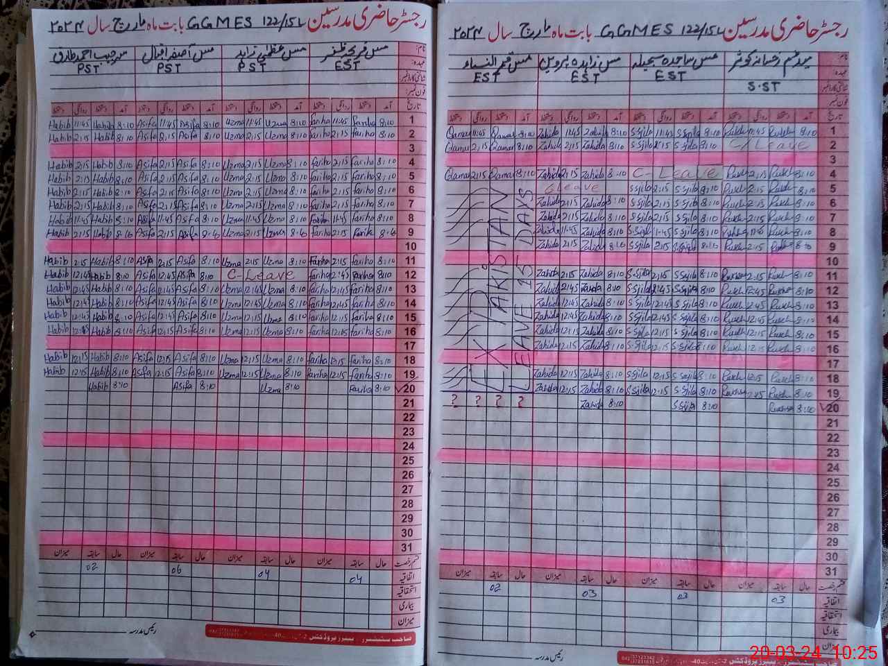 | Remarks (Use Separate Page if Required): QAMAR UN NISA EST GENERAL FOUND UN AUTHORISED ABSENT FROM DUTY HER EX PAKISTAN LEAVE FOR UMMRAH WAS FROM 05 MARCH 2024 TO 19 MARCH 2024 RANDOM CLASS FIVE IS NOW IN CLASS SEVEN AND BOYS ARE PASSED OUT FROM THIS SCHOOL | |||||
