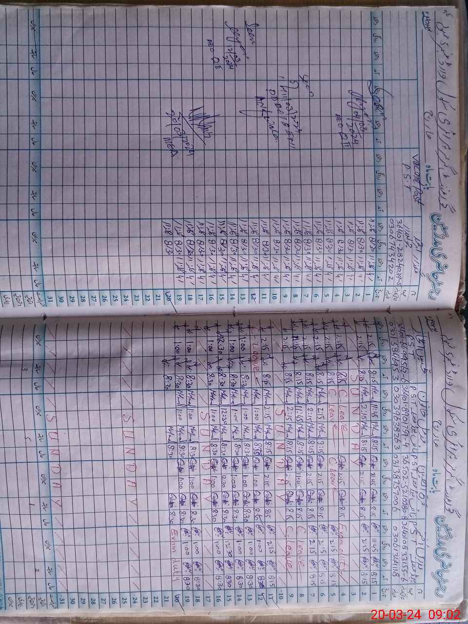 | 36**** | Na**** Ak**** | PST | Regular | 1 | 0 | 0 | 0 | 0 | 0 | 0 | 0 | 1 | Exam Duty |