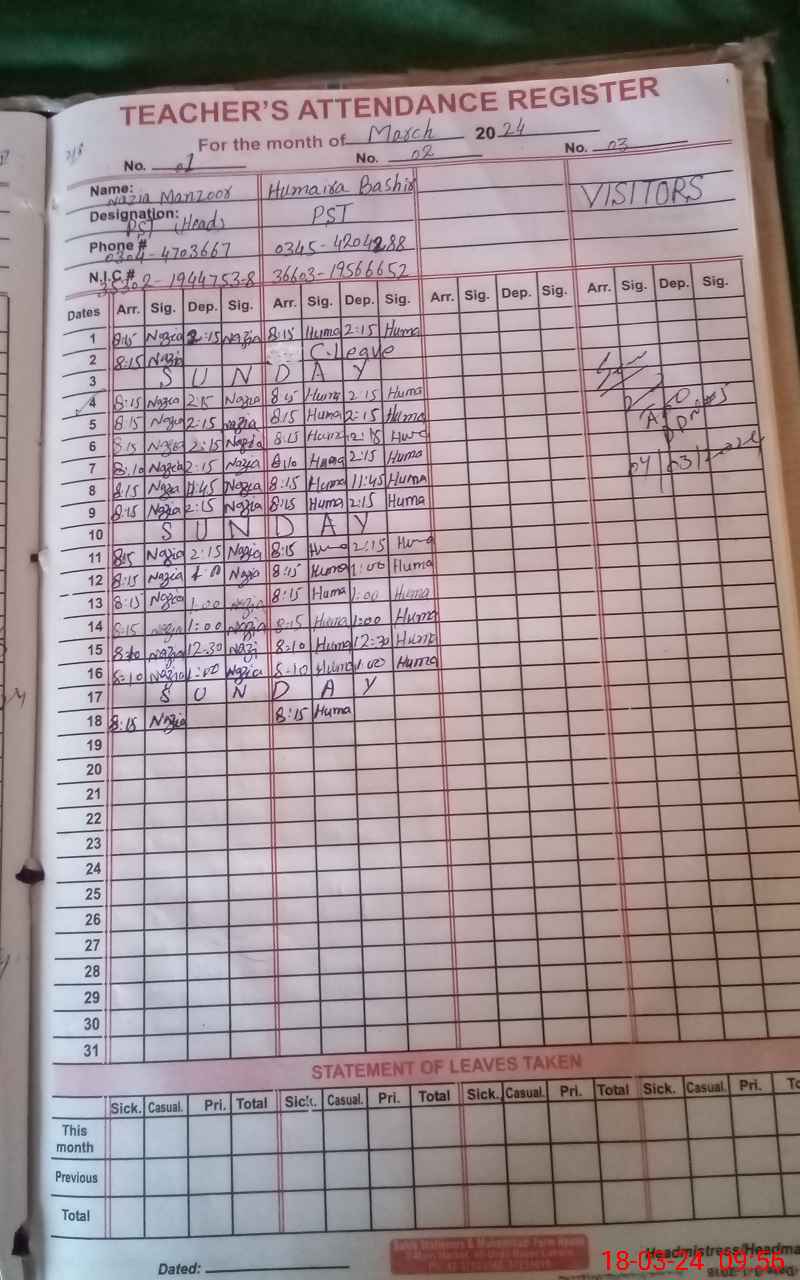 | Name: Hu**** Ba**** Designation: (School Headmaster's/Headmistress's) PST Phone/Cell Number: 03**** |