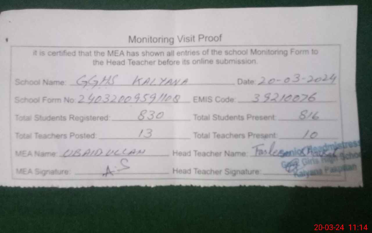 | EMIS Code: 39210076 | Name of School: GGHS KALYANA | |||