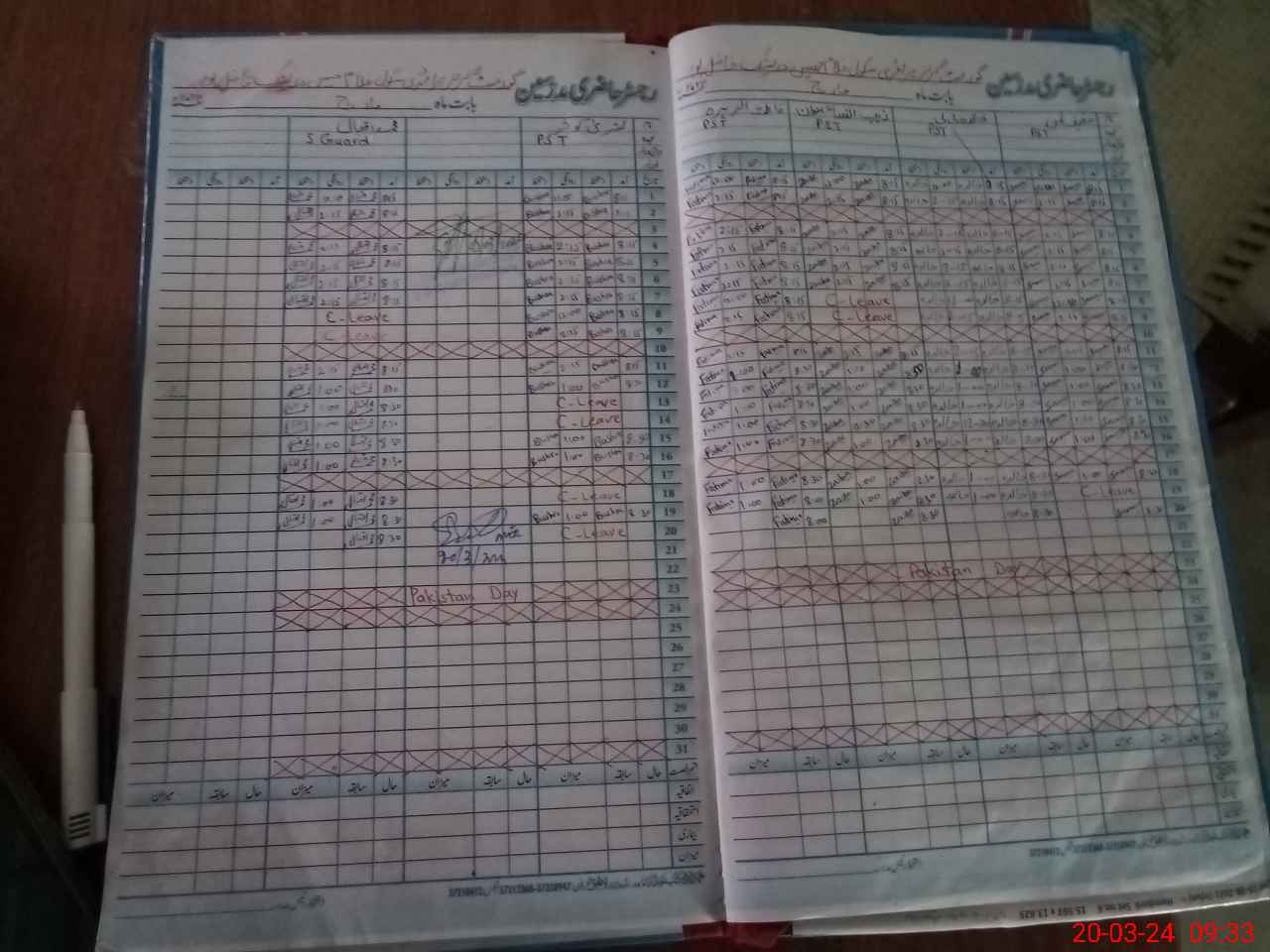 | CNIC | Full Name | Designation | R/C | Absence During Last Calender Month |