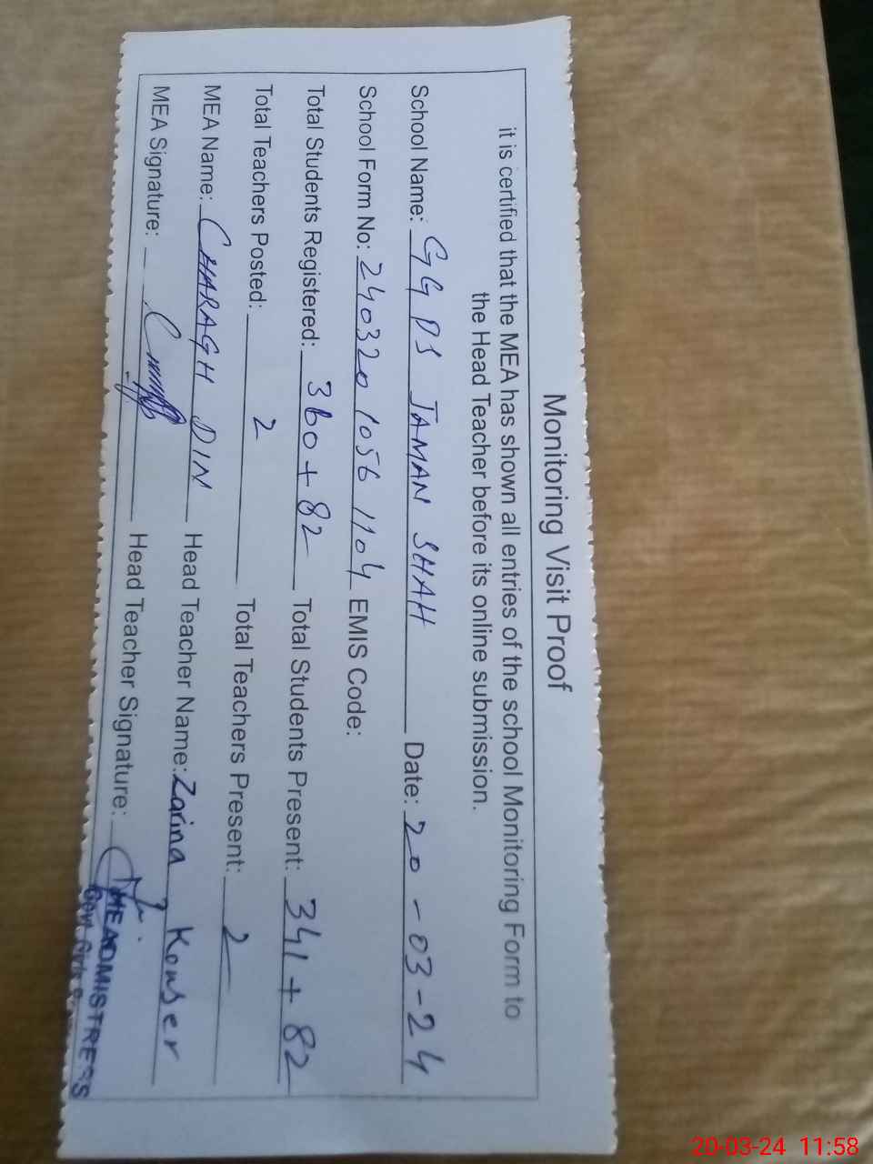 | EMIS Code: 39220553 | Name of School: GGPS JAMAN SHAH | |||