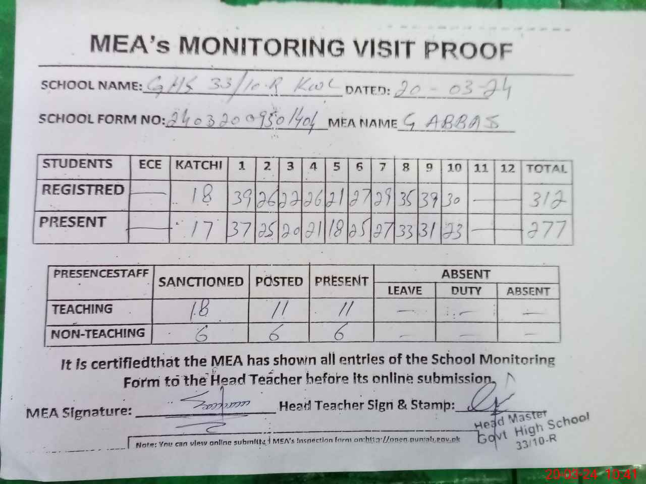 | EMIS Code: 36420026 | Name of School: GHS 33/10-R, KACHA KHUH | |||