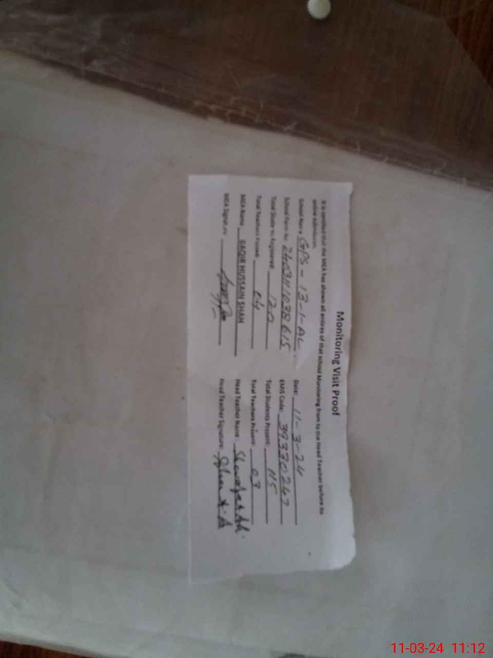 | Attendance Register | Head Teacher | MEA with School | Visit Proof |