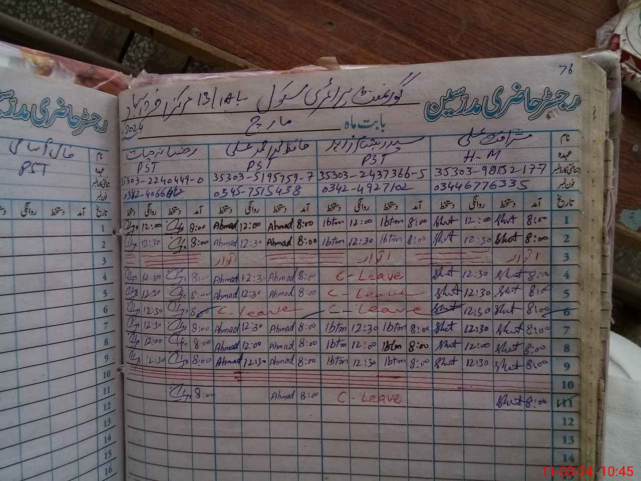 | Name: Sh**** Al**** Designation: (School Headmaster's/Headmistress's) PTC/JV Phone/Cell Number: 03**** |
